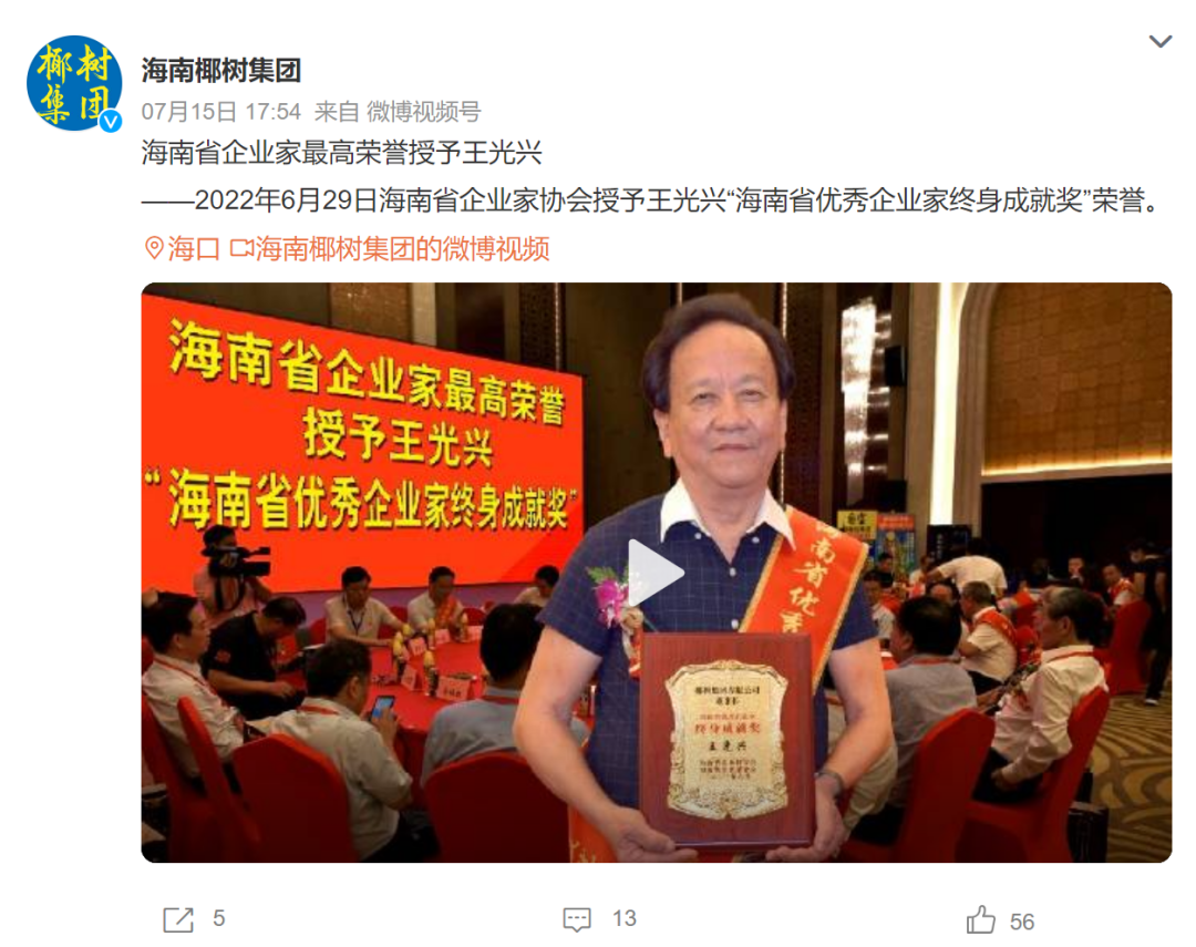 对此的一个佐证是,2007年起,椰树集团内刊《椰树人》的封面几乎全部变为了王光兴的个人照或有他在内的合照,为刊头题字的也是王光兴本人。此后的《椰树人》,还带有了个人崇拜色彩。