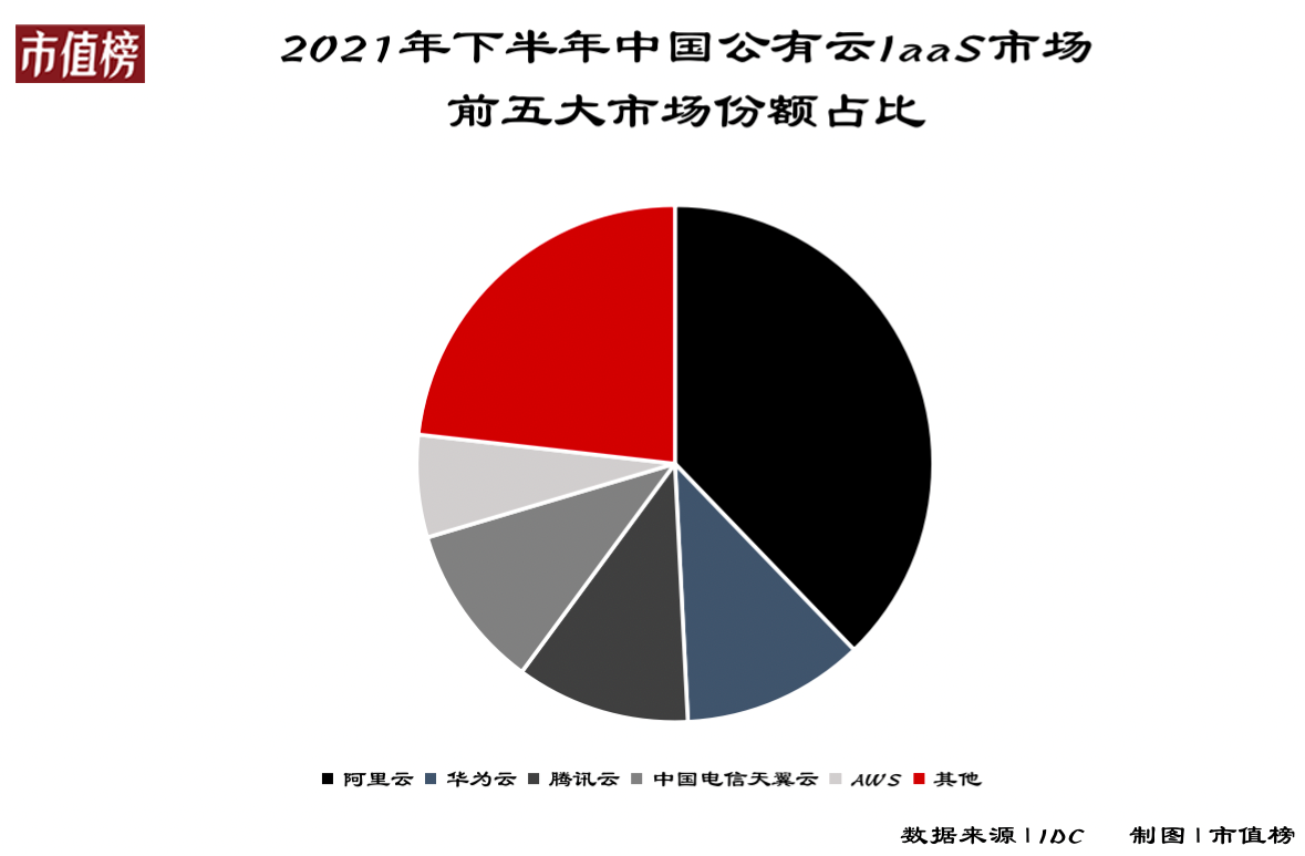 2021年中国汽车云IaaS+PaaS市场,华为云、阿里云、百度智能云、腾讯云,已经合计占据了71.7%的市场份额。