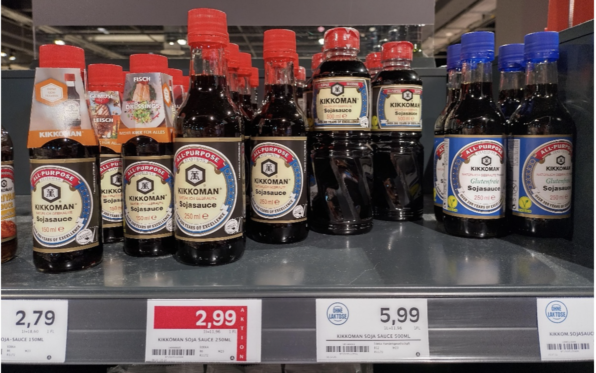 随着日本寿司的大受欢迎以及东亚裔居民比例的逐渐提升,欧洲市面上原产自亚洲的各色酱油也在过去五年内相继登陆欧洲各大连锁超市,酱油品种亦愈发齐全。