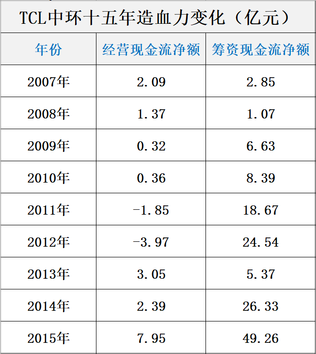 过去十六年间,TCL中环也一直在提升自身的造血能力及融资能力。据黑鹰光伏统计,2007年-2022年上半年期间,TCL中环经营活动产生的现金流量净额合计高达172.08亿元,合计净筹资416.39亿元,仅两项就为TCL中环提供了588.47亿元的净现金流。