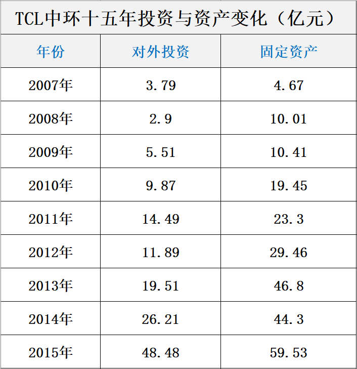 比如据黑鹰光伏统计,在2007年-2022年上半年期间TCL中环合计对外投资达795.19亿元,期间固定资产增长了76.55倍。