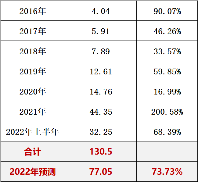 根据浙商证券预测2022年TCL中环归母净利润可能达到77.05亿元,若以此计算,过去十年间TCL中环约增长99.06倍。