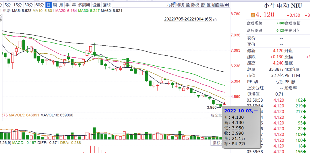 受此影响,小牛电动的股价,9月盘中价格下跌至4.5美元,后于10月3日更跌至3.95美元,创下了上市后新低。