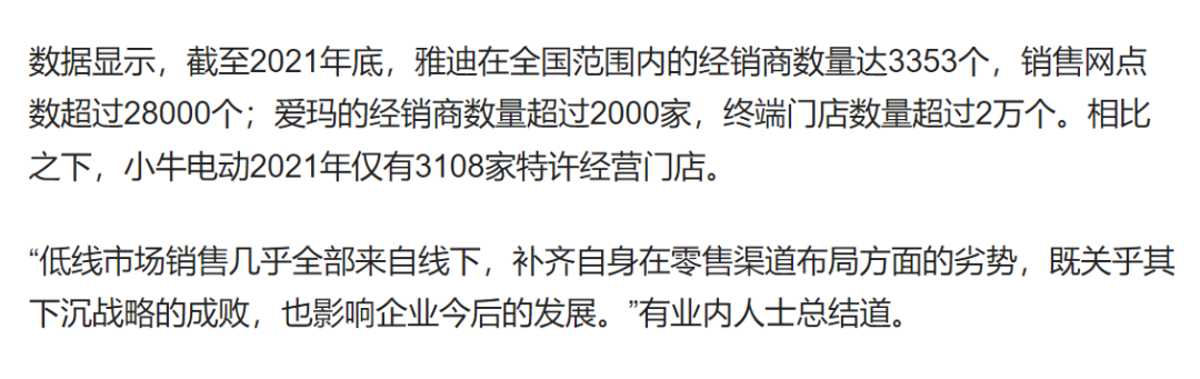 在公告中,小牛电动将业绩下降,归结为疫情造成的一线城市消费下降。某些市场分析人士认为,也有小牛电动低线城市线下网点布局不足的原因。