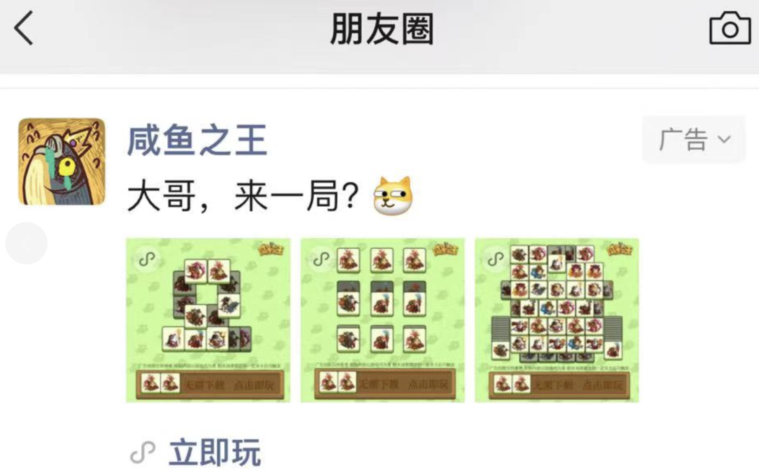 使得用户在下一次看到该游戏的宣传素材,第一时间就浮现游戏画面+游戏内容,增加转化的成功率,这也从侧面反应出《咸鱼之王》对着自身魔性搞怪画风有着高度自信。