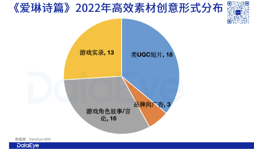 在创意形式上,《爱琳诗篇》在创意形式上,类UGC短片以及游戏角色故事占比较多。