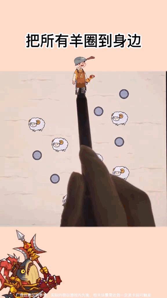 再比如该素材,在文案上凸显“把所有羊圈到身边”;在玩法上,以休闲解压的圈羊玩法吸引玩家的关注;并且会在素材左下角添加《咸鱼之王》的角色形象以展示这是《咸鱼之王》的游戏素材。该素材并没有直接以《羊了个羊》素材作为宣发,而是选择紧贴“羊”这个要素,带动玩家对游戏的游玩欲望。