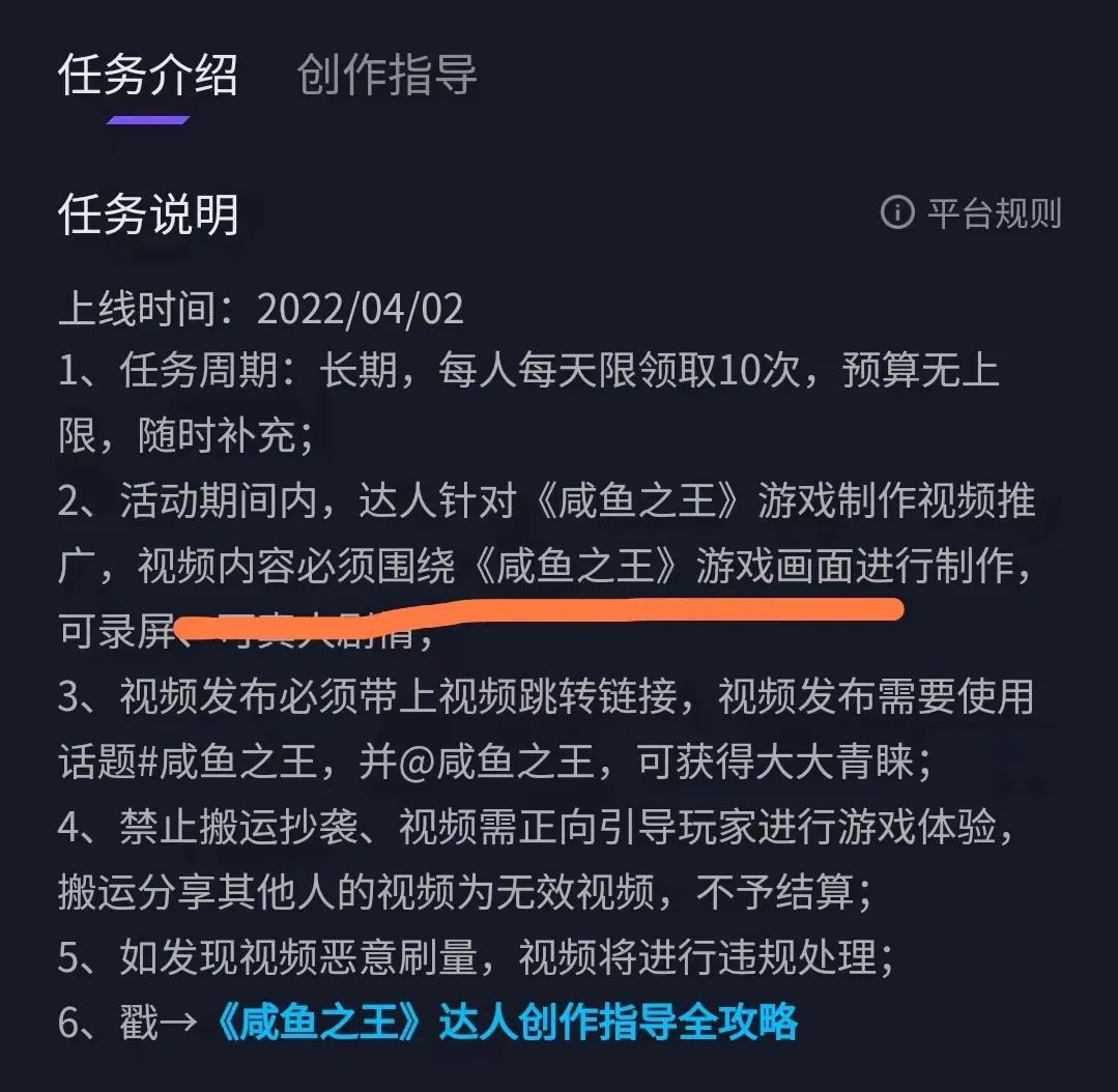另外值得注意的是,在发行人计划中,《咸鱼之王》特别要求视频内容必须围绕游戏画面进行制作,这意味着,项目组对于游戏画面比较执着,说明独特的三国 咸鱼题材,是他们判断能高效吸引用户的点。