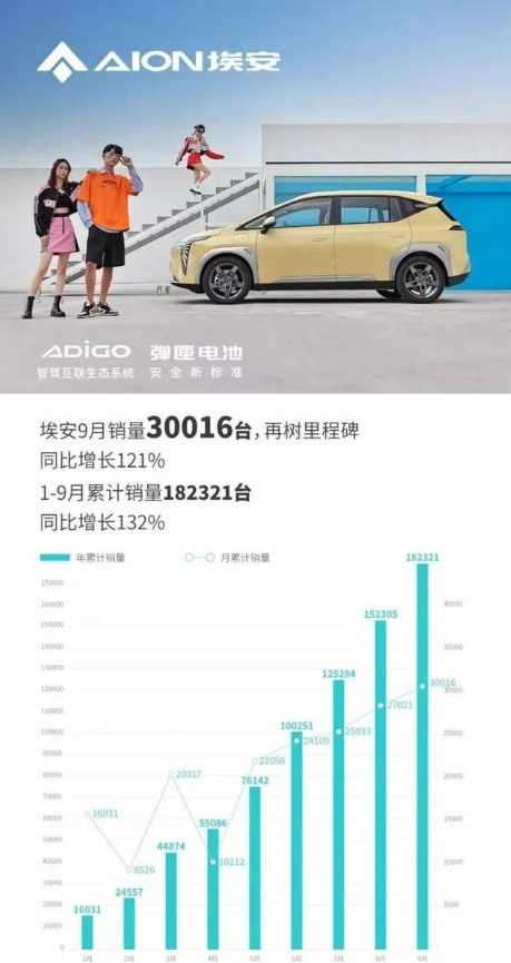 确实,广汽埃安的销量给予了古惠南很大的自信。根据官方数据显示,9月埃安销量超3万辆,这是埃安成立以来,首次月销量突破3万辆,在此之前广汽埃安已经连续4个月单月销量超2万辆,8月销量再创新高达2.7万辆,同比增长133%,不仅增速超过整体增速,而且超越蔚来、理想、小鹏销量总和——1-8月累计销量15.2万辆,在7月份就已经超越去年全年销量。