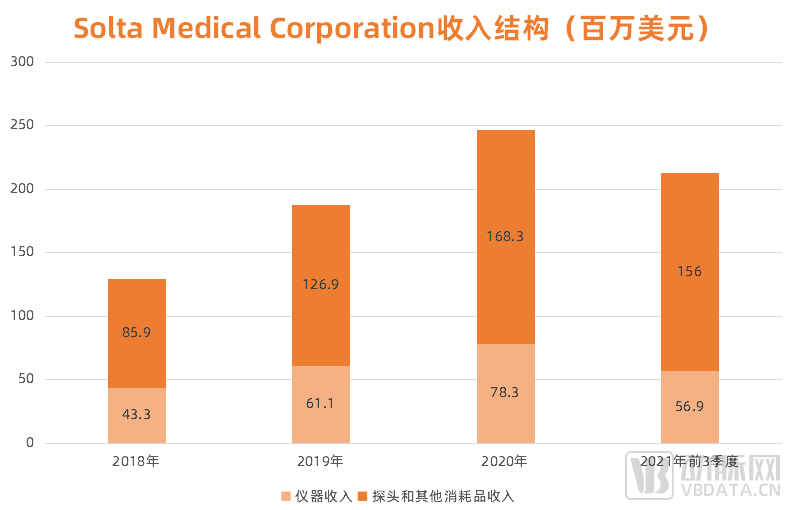 得益于“剃须刀+刀片”的模式,Solta Medical Corporation拥有不错的盈利能力。招股书显示,2021年前3季度,Solta Medical Corporation的热玛吉探头和耗材贡献了超70%的营收。其中,耗材收入占比的提升,是带动Solta Medical Corporation毛利率增长的主要原因。