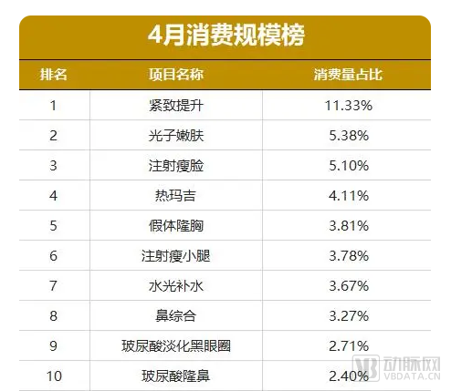 4月医美项目消费规模榜 图片来源:新氧数据颜究院