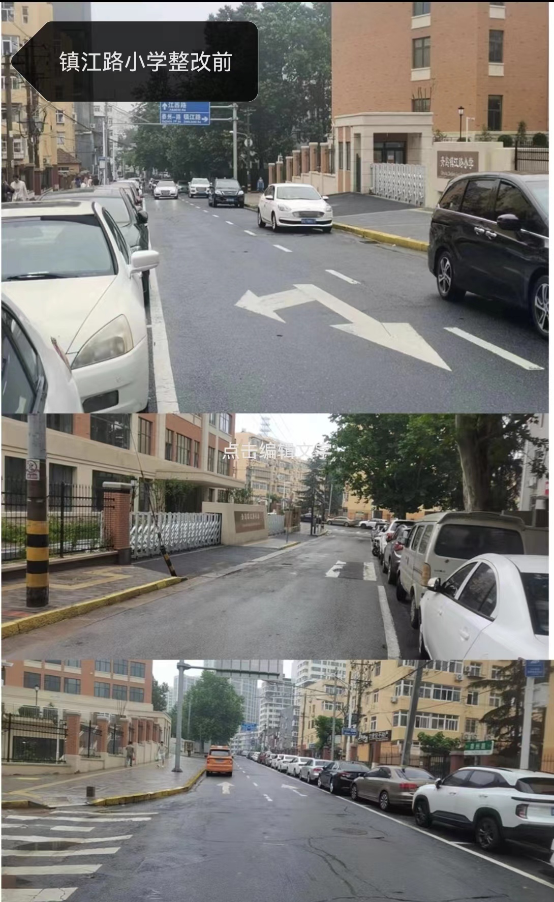 一是将镇江路小学学校周边的27个固定泊位取消,改变为27个限时泊位,允许夜间和节假日停放。即满足了周边群众的泊车需求,又充分释放了道路通行能力。二是新增了泰州路人行道护栏45节,将行人和车辆物理隔离,充分保护了学生和家长的安全。三是新增了限速标志、网状线、人行横道线、各类标志牌共15个,让醒目的交通设施成为保畅通、保安全的又一道保护伞。