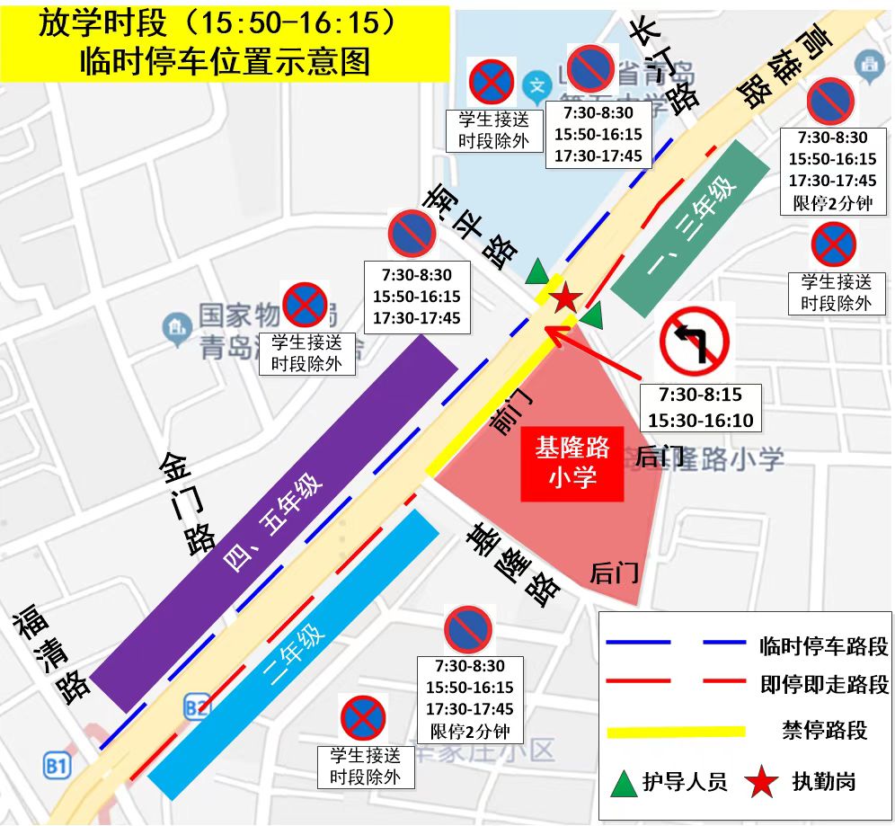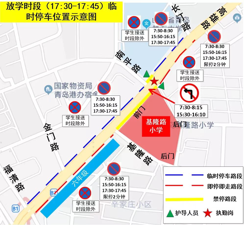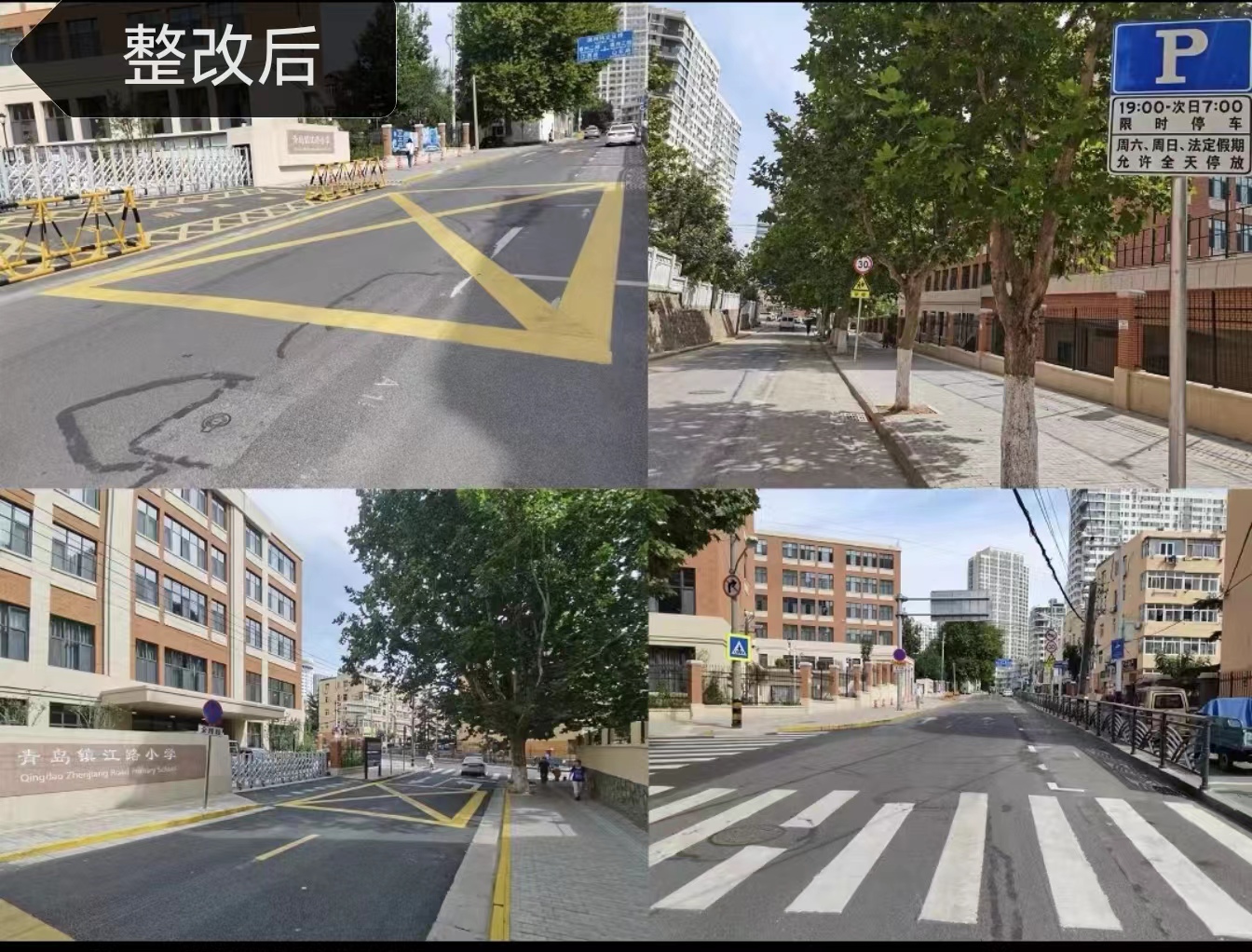 基隆路小学、镇江路小学周边区域治堵方案实施以来,学校周边道路停车难、秩序乱、通行堵的问题已经得到了明显改善,道路通行效率明显提升,接送高峰时长缩短15分钟。此举措得到了学校领导、学生家长高度给好评,市南交警一直用心用情用力解决好群众身边的“急难愁盼”。以提升城市通勤效率为重点,不断增强人民群众获得感、幸福感、安全感。