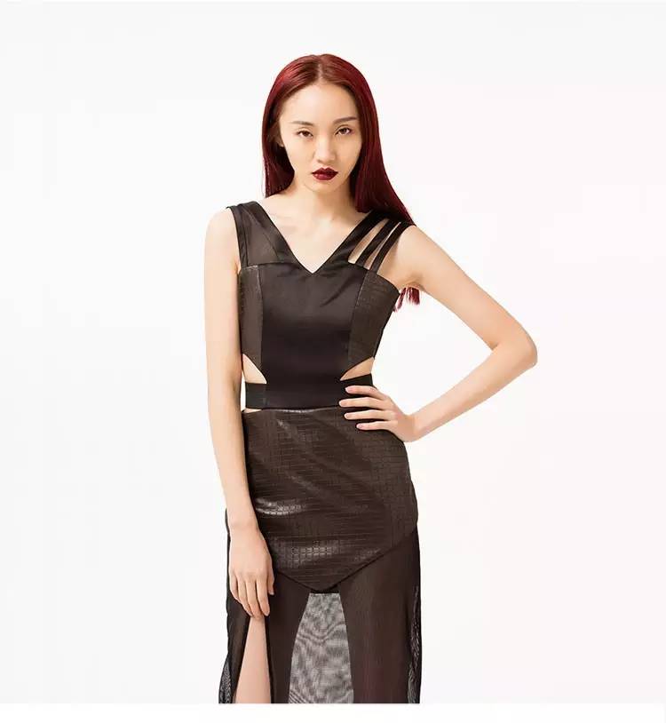 她的设计中也贯穿着线与面的构成,只是创作媒介从画纸转移到了面料。在她所设计的服装中,我们同样可以看到通过裁剪、镂空、拼接组合而成的线与面,感受到线条、块面下显露的性感与狂野。