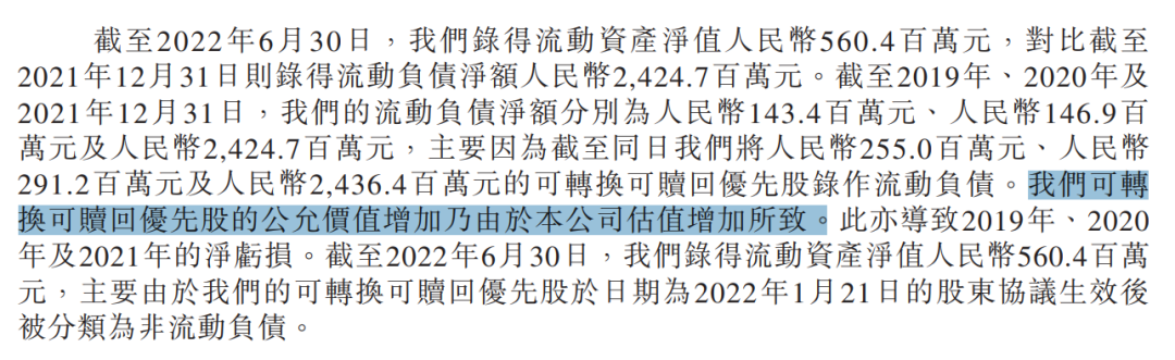 在2022年上半年,流动负债转也转正成为资产净额5.6亿元。蕉下解释称,原因是可转换可赎回优先股于2022年1月21日的股东协议生效后分类为非流动负债。