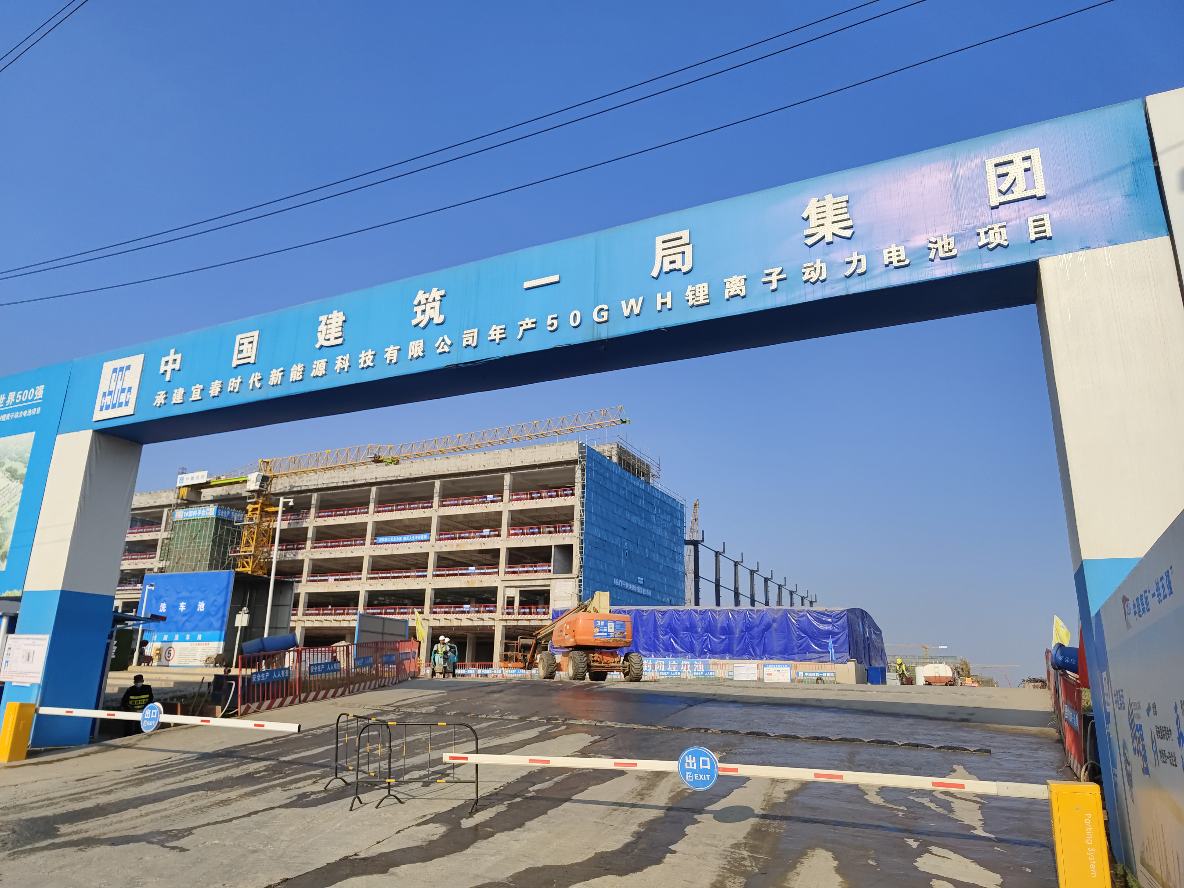 全球锂电池龙头企业宁德时代的锂电池生产制造基地及碳酸锂等上游材料生产项目,就位于经开区。该项目由中建一局承建,大门附近的大楼已搭起外部结构,不少工人正在施工。