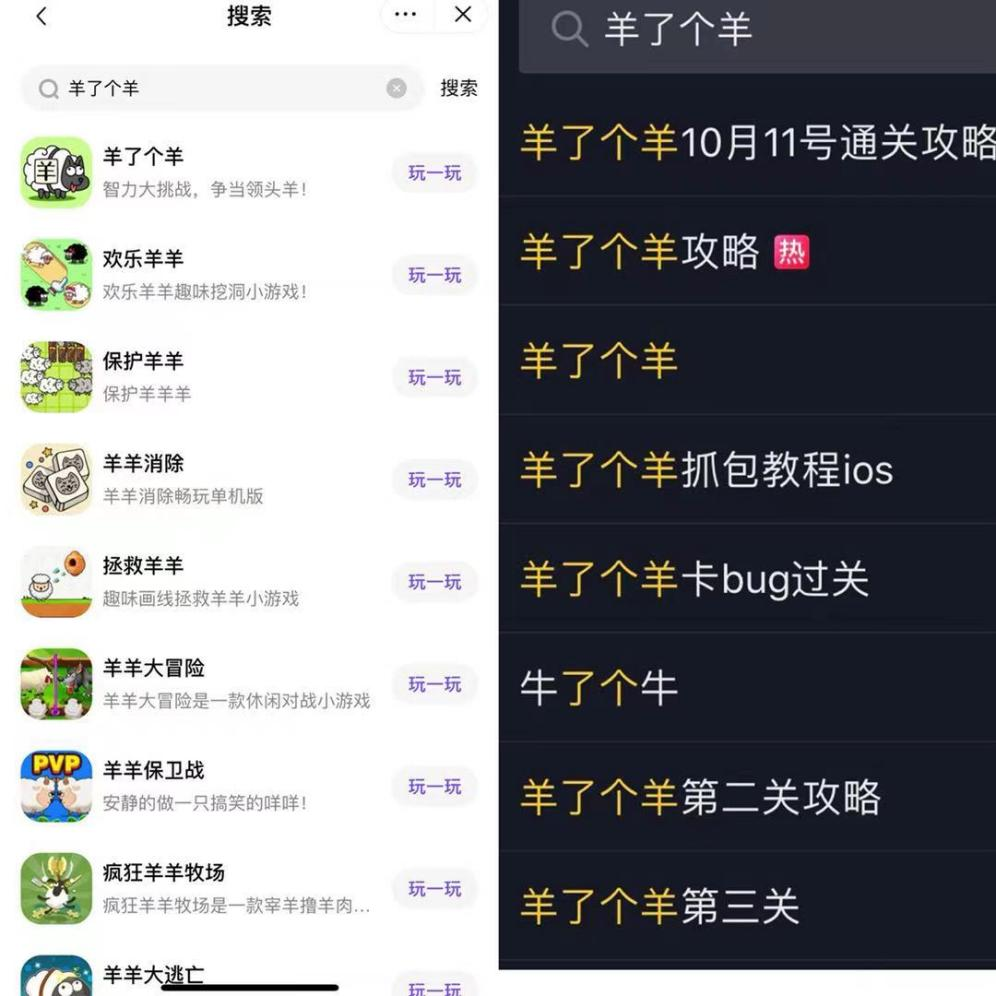《羊了个羊》在微信与抖音平台上线至今,火爆热度持续近一个月,截至目前其仍在抖音站内的免费类游戏广告投放排行榜冠军之席,抖音平台关于“羊了个羊”话题播放量高达157亿次,相关话题“羊了个羊最新攻略”等话题播放量持续走高,还有每日通关攻略的内容分享,还冒出来一堆《羊了个羊》的相关游戏,热度进一步扩散。