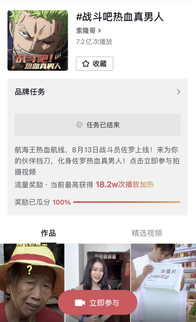 像《原神》《哈利波特魔法觉醒》《炉石传说》等知名游戏均参与过此计划,其中《航海王热血航线》发行过程积聚疯产姐妹、张若宇、梅尼耶等头部博主以变装、剧情演绎等多样内容花式提升用户对该游戏的认知,《航海王热血航线》上线一周年时,各种活动信息在抖音站内发酵,让其直接冲进了iOS畅销榜前十,目前在App Store上超过60万用户给该游戏打出了4.8的评分,是目前市面上航海王IP手游中评分最高的产品。