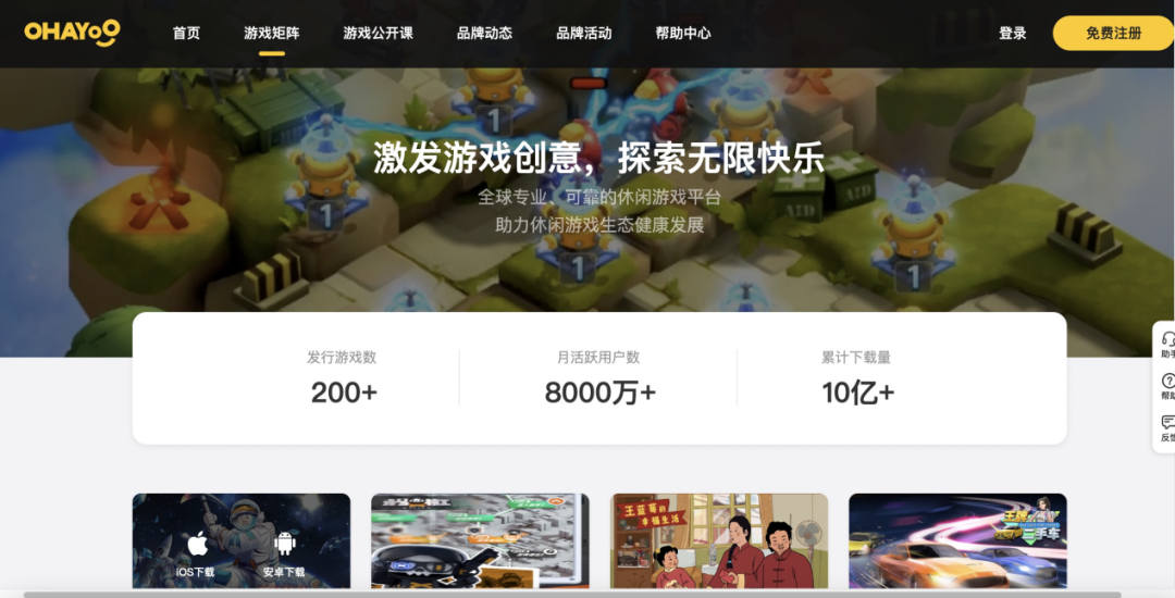 字节做游戏的初心与抖音游戏内容发展策略有一定相似,即先搭建平台再谈自研产品。目前,字节旗下的游戏平台包括OHAYOO、朝夕光年和蛋卷游戏等,其中OHAYOO定位为休闲游戏发行平台,根据官网的数据显示,Ohayoo至今已发行了200余款游戏,月活跃用户超过了8000万,累计下载量也突破了10亿,其发行的休闲模拟经营式游戏《我的小家》累计下载量超过5000万,霸榜APP Store免费榜TOP.1近半月,作为一款轻体量游戏能获得此佳绩,抖音推广的功劳不言而喻。