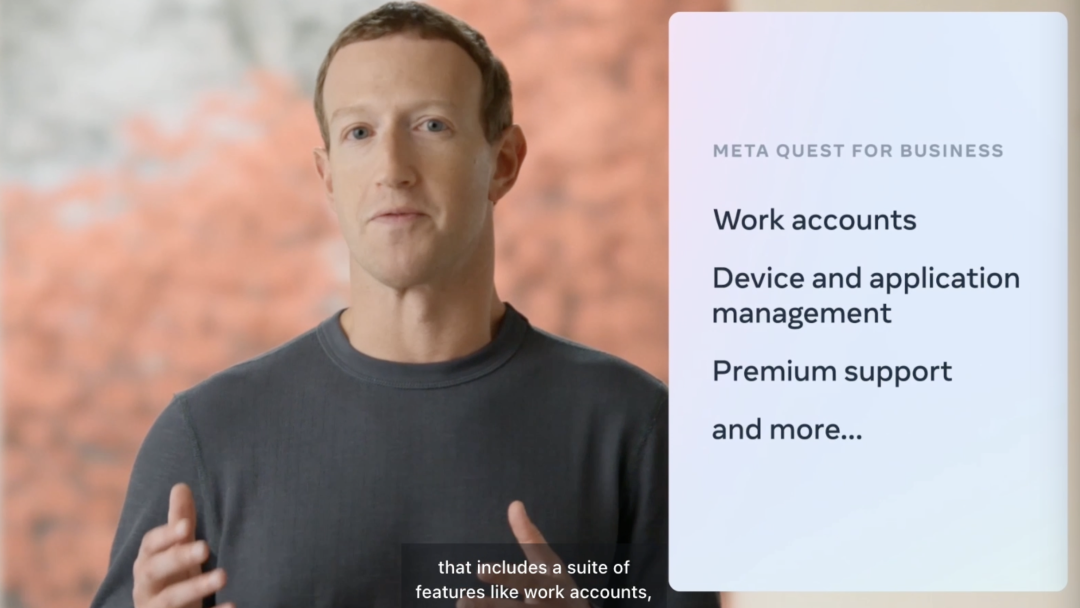 此外,扎克伯格揭晓了Meta针对“元宇宙社交平台”Horizon Worlds版本迭代、Quest 2去年成果如何、虚拟数字人等多方面内容更新做了详细阐述,并且他还提前透露了明年即将发布Meta Quest for Business计划。