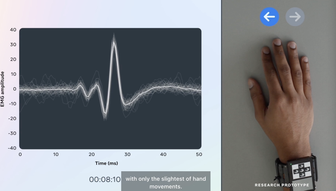 最后,扎克伯格还简要介绍了一下正在研发的EMG腕带原型。该设备可以通过轻微动作产生的肌电信号,完成交互操作。“我们认为,这是未来非常重要的一项技术。”扎克伯格说道。