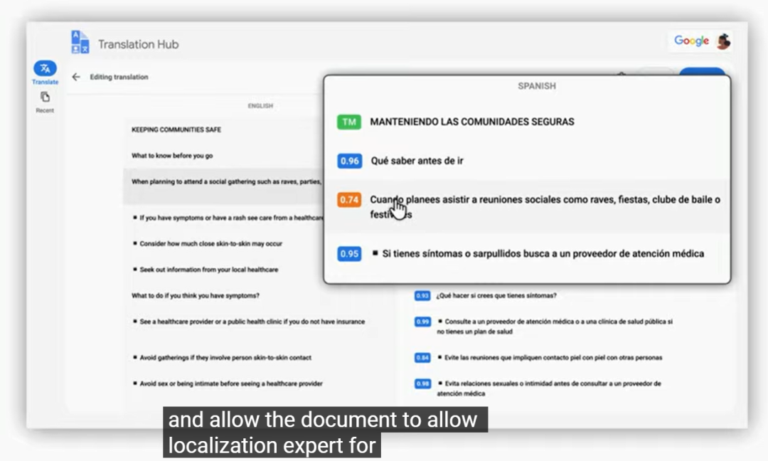Translation Hub结合了神经机器翻译和AutoML等谷歌技术,可以翻译135种语言的文档,支持Google Docs、Slides、PDF和Microsoft Word等多种形式。“它不仅保留了布局和格式,还提供了精细的管理控制,例如支持后期编辑的人反馈和文档审查。”谷歌云AI和行业解决方案副总裁June Yang说。