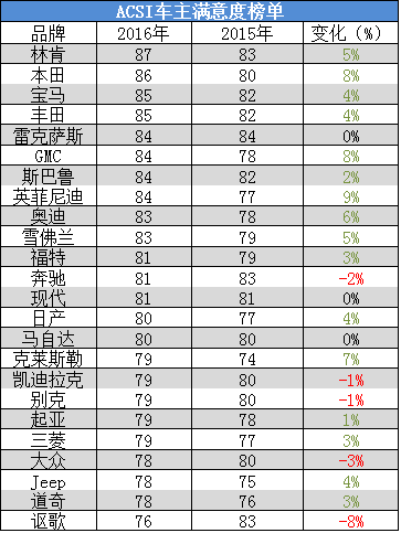 在今年ACSI榜单的24个畅销品牌中,只有5个品牌呈现下滑趋势。比如,此前受到了"排放门”影响的大众汽车,今年美国消费者对它的满意度就有了明显的下滑。