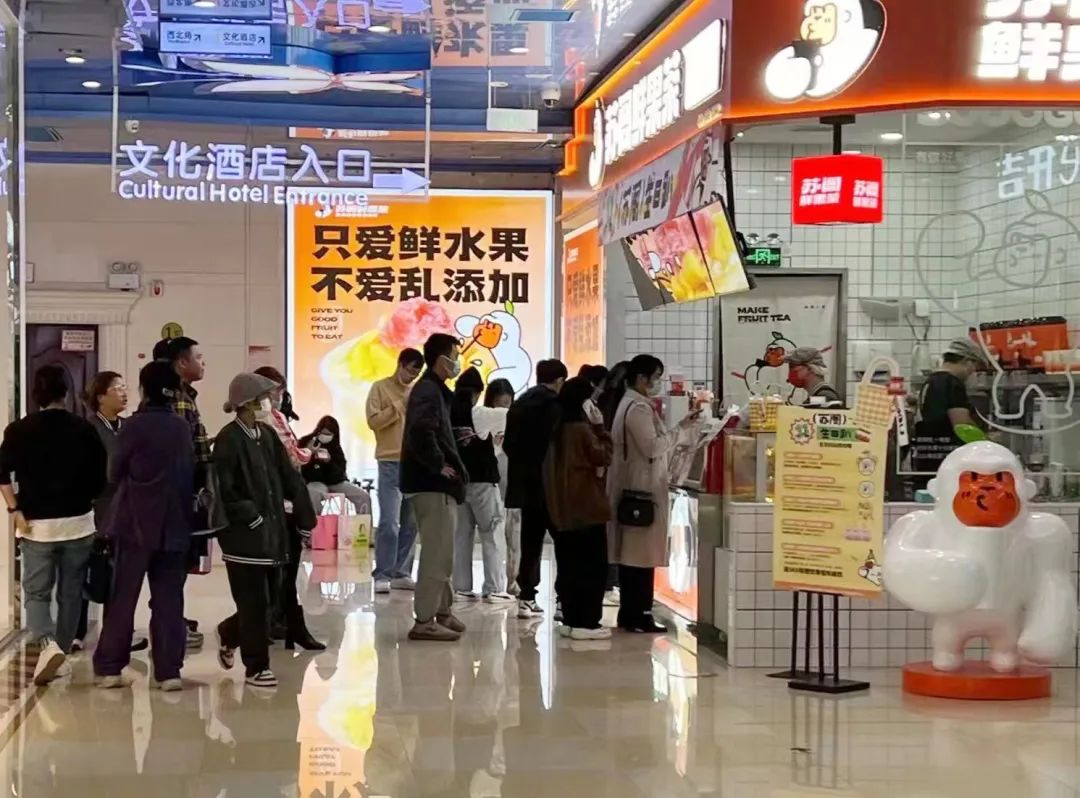 有些品牌仍在保持增长:苏阁鲜果茶位于广州、长沙的门店,从8日到10日,仍然在持续爆单,多家门店都排起长队。