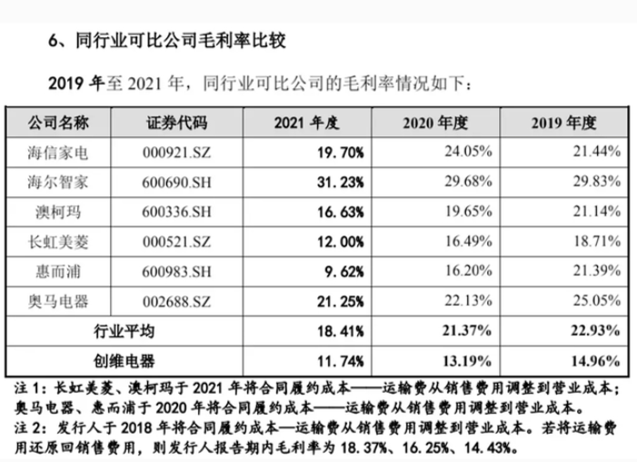现阶段,创维电器ODM主要客户为小米、云米、国美、海信家电、澳柯玛等。其中,小米是创维电器第一大客户,2021年创维电器对小米销售金额5.36亿元,占当期销售总额的13.4%;报告期各期,公司综合毛利率分别为 14.96%、13.19%及 11.74%,逐年下降。