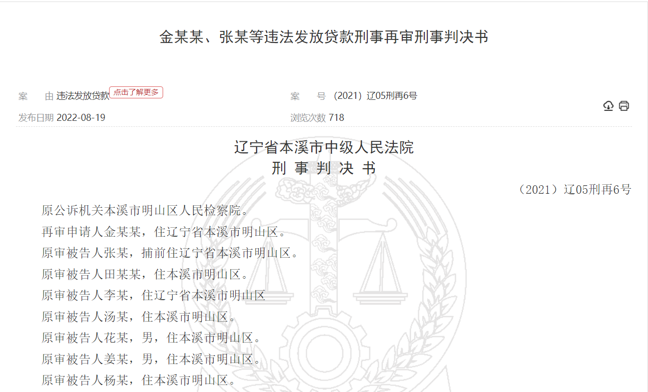 近日,裁判文书网公布了一则再审刑事判决书,本溪市商业银行支行行长、副行长伙同业务主管与信贷员进行违法发放贷款给银行造成了较大损失,经过7年时间终于尘埃落定。