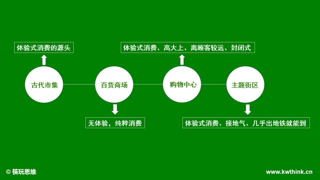 从购物中心到主题街区,它是今天的思维吗?其实也并不是,如果纵观整个消费发展史,我们可以看到,其实今天的购物中心和主题街区都是对传统市集/古代市集的回归而已。