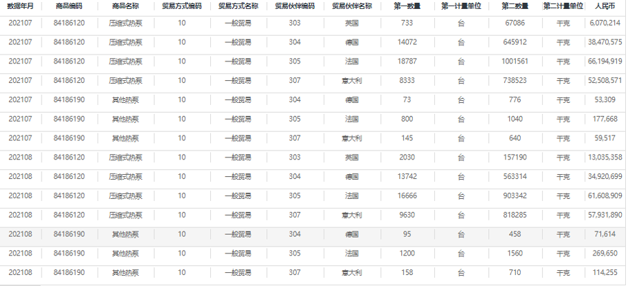一份海关数据显示,2021年7、8月出口英法德意4国的空气压缩热泵83993台,2022年是67798台,比上一年更少。值得期待的是,根据产业在线的数据,8月我国空气源热泵出口额同比增长59.9%至1.2亿美元,其中均价上涨59.8%至1004.7美元/台。