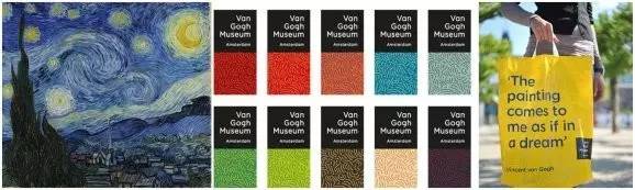 这个标志很完美地结合了两种风格。将梵高的绘画和美术馆的品牌完美地结合在了一起。为了让标志适应多种场合,标志有数十种颜色可以选择,所以这个标志不是单独的图像,而是建立一种设计秩序,可以根据不同的情况,灵活地和用户交流。