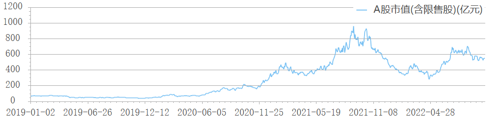 仅用3年上机数控成为硅片赛道的新贵。其股价也从2019年初的20.04元/股,涨至2022年10月12日的141.58元/股,涨幅超6倍。市值从66亿元到553亿元,市值增加近500亿元。