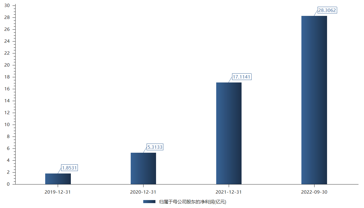 仅仅3年来自硅片的贡献就由2.53亿元涨至107.53亿元。自从搭上“硅片”这一快车道,上机数控净利润自2019年到2022年前三季度由1.85亿元涨至28.3亿元,飙涨超14倍。