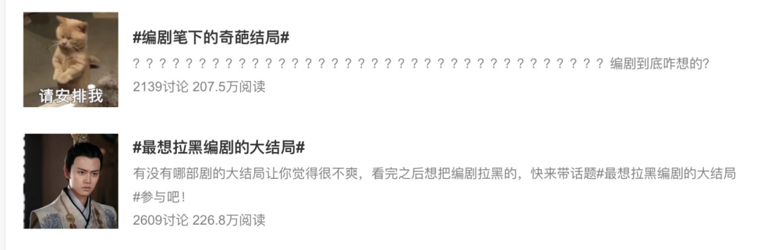 观众喜欢用he、be来形容结局,前者代表皆大欢喜的结局,后者代表意难平的结局。除此之外,还有开放式结局。但无论是哪种结局的电视剧,都被观众抨击过烂尾。