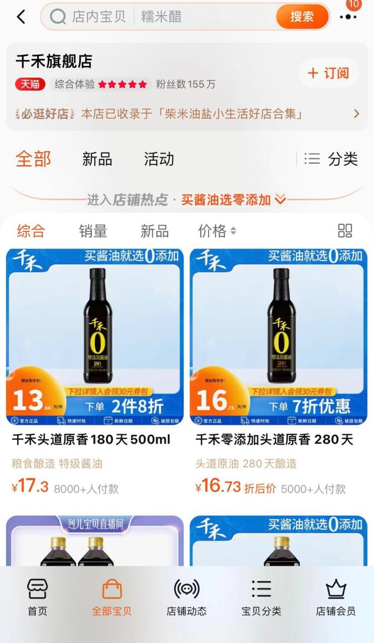 (图 / 千禾酱油天猫旗舰店页面)