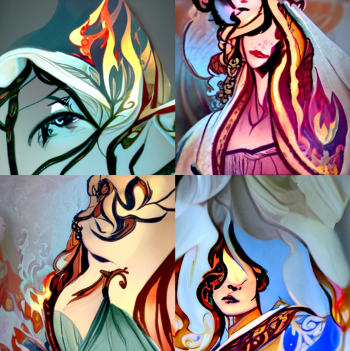 关键词:“Mucha风格的肖像,火之女王。”