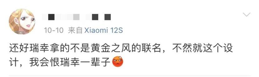 另一方面,IP联名蕴含巨大商业机会,但要把握好也非易事。面对IP粉丝细致、“严苛”的检阅,品牌方的压力也不可谓不大,如此次瑞幸与JOJO联名,其杯套和纸袋的设计就被不少IP粉吐槽丑,甚至有不少JOJO粉因看不下去而进行二创,并在平台晒图。因为觉得只是贴了个外观,还有不少网友吐槽不用心,表示“二次元的钱就这么好赚?”