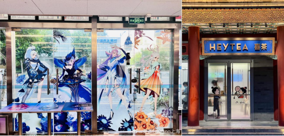 如原神与必胜客联名,推出102家体验门店,肯德基与时光代理人联动,也有限时开放的主题店,便利店品牌罗森在这方面更是“资深”玩家,今年以来,其与王者荣耀、国王排名、咒术回战、倩女幽魂手游、第五人格等众多IP联动,均推出了主题店铺,从外观到店铺内销售商品,均体现了非常显眼的IP元素。奶茶店喜茶、奈雪的茶等,也同样会针对部分IP改造线下店,吸引消费者眼球。