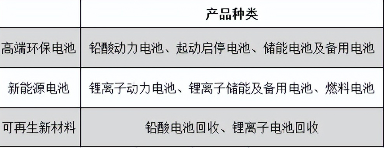 制造业业务则由多个产品组合组成,包括高端环保电池、新能源电池和可再生材料。其中,高端环保电池中的铅酸电池又可划分为动力电池、起动启停电池、储能电池及备用电池等;新能源电池则包括锂离子动力电池、锂离子储能及备用电池及燃料电池;可再生新材料则是电池的回收循环利用。
