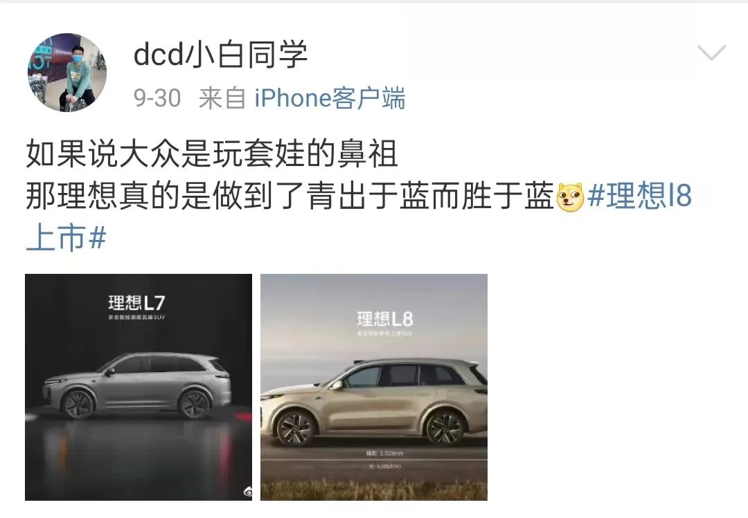 而“One more thing”理想L7,如法炮制。为此,理想汽车还背负上了“套娃”的调侃。