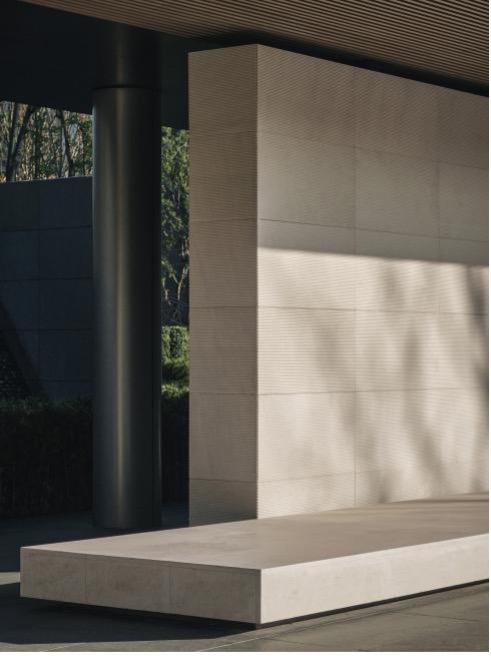 石墙、水幕、框景,台阶的线条,自由的风……当一切形象被简化之后,艺术与自然的真实才逐一显露:自然的空间所引入的是顺其自然的东方禅意。这是静物的表现形式,也是构建城中静谧绿洲的依托。