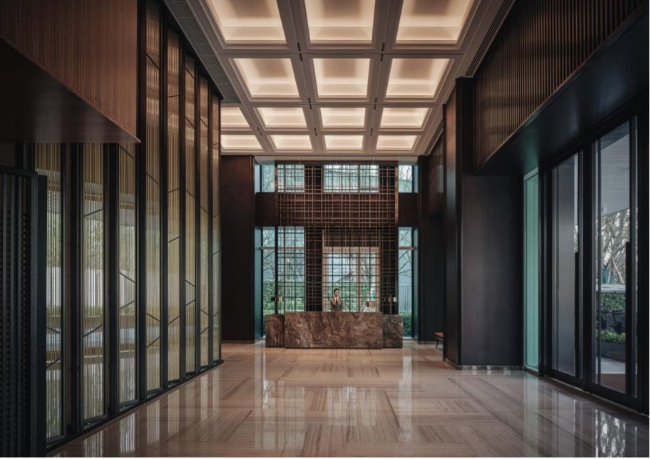 材质细节之处更是用心,这里特设大堂区,细腻的白色石材与木色延续经典配色,低调的深灰则配以四川独特湖水绿马赛克还原奢雅感觉,透过材质丰富空间的层次感,构建尊贵、舒适的内在体验及感受。