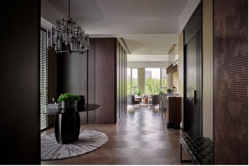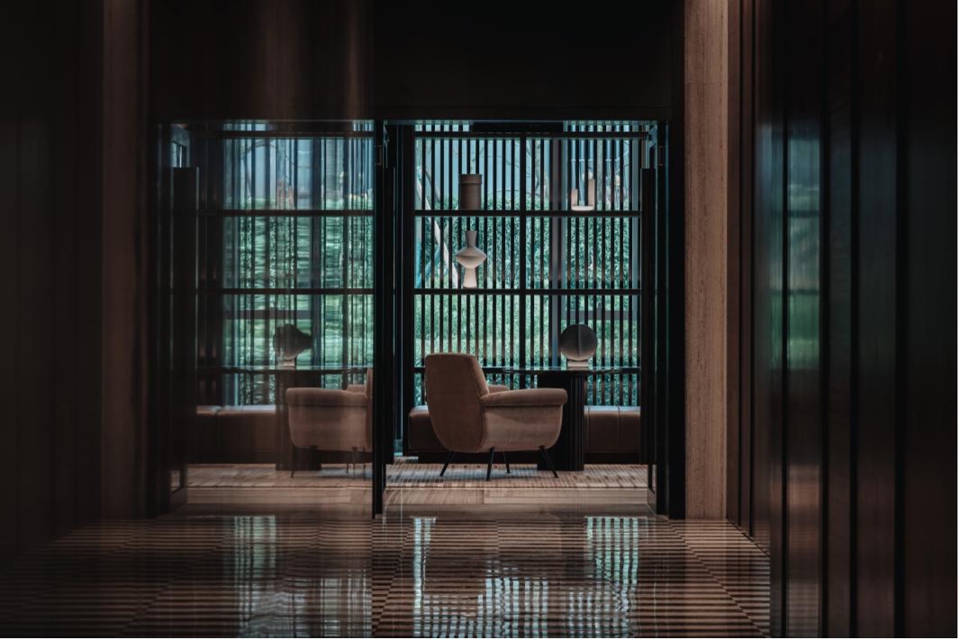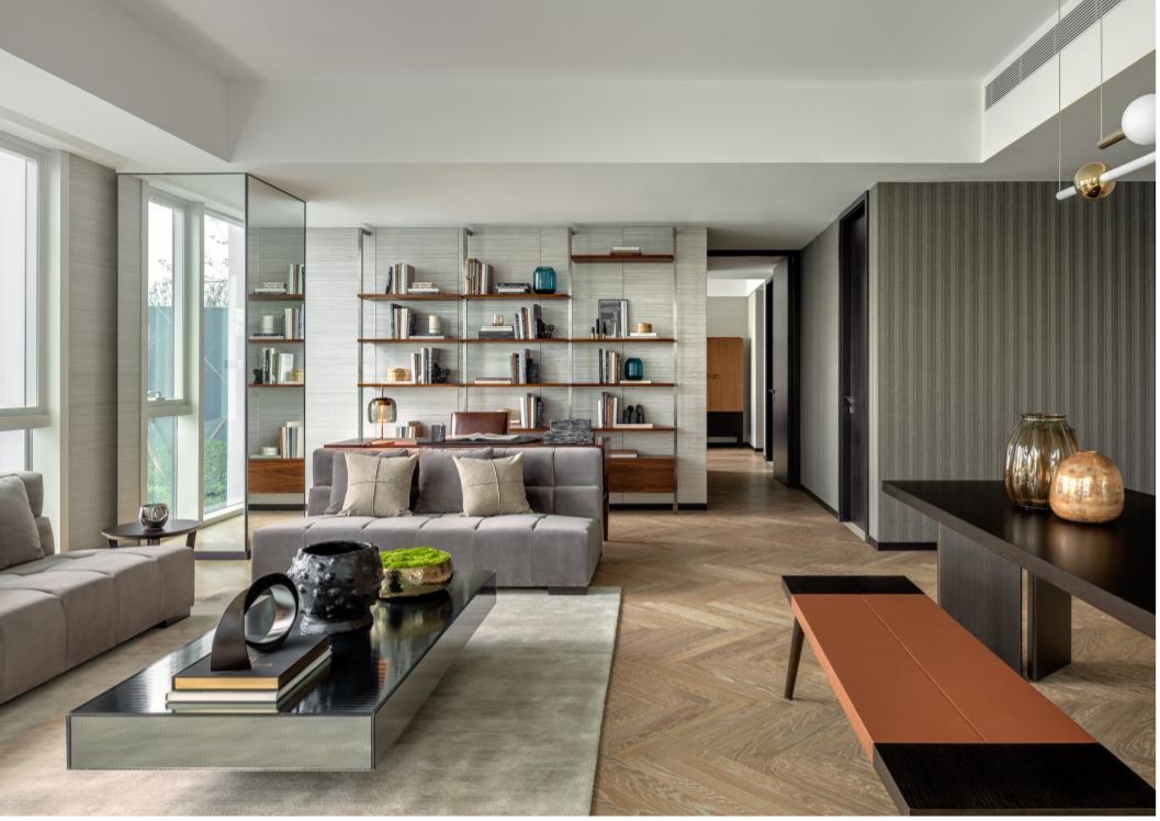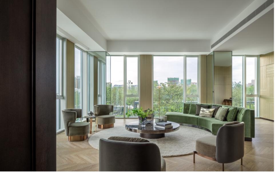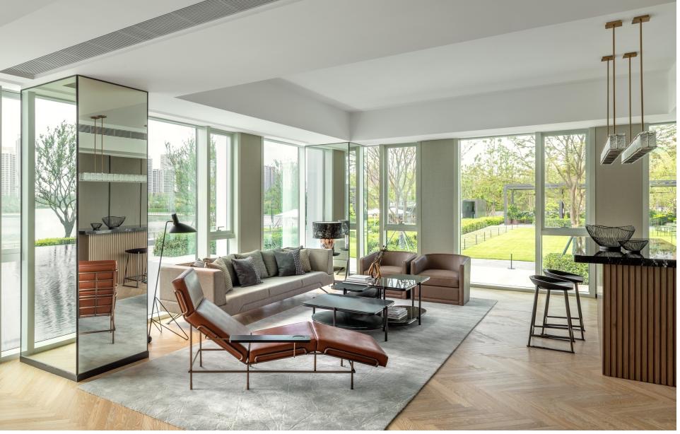 室内设计由LA CADIERE 御用设计师陈建中领衔设计。站在落地窗前,城市⽣活的⼀切美好盛⼊眼底。居其中,⾏其间,⼀切如⾏云流⽔,莫不安逸。