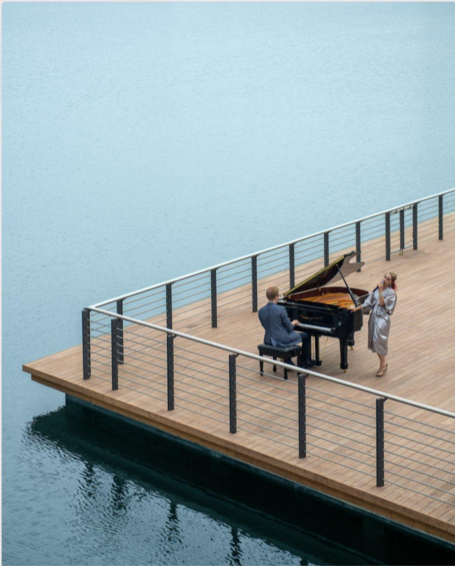 湖水、步道、浮桥、叠水、码头、树林,抒怀着这座城的自然乐章;「时间的盒子」银杏广场、「漂浮于湖畔的宝石」蔚蓝湖滨艺术中⼼则开启了城中艺术感知,从这个维度出发,拔地而起的蔚蓝湖滨1号,不仅勾勒出天际线,更续写着城中物质与精神的更高阶迈进。
