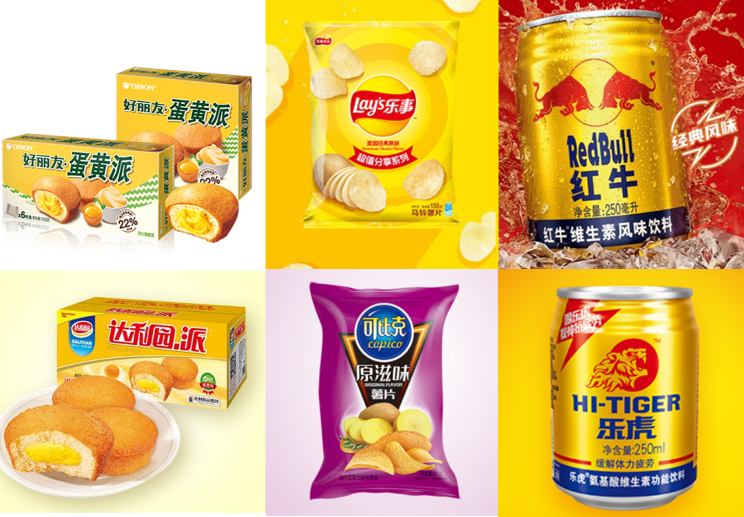 以达利食品集团为例,从2002年模仿好丽友推出蛋黄派;2003年在乐事薯片后推出可比克;到2007年跟进王老吉推出和其正;再到2013年跟进红牛推出功能性饮料乐虎,产品和品牌的定位、买点、外观和命名方式都非常相似[7]。
