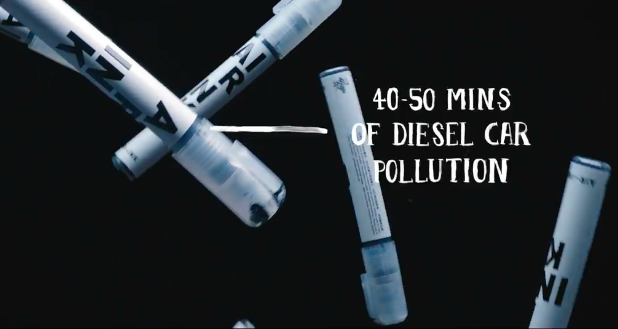 Anirudh一口气制作了150公斤的Air-Ink,这个容量的墨水相当于一辆柴油车超过2500小时排放的碳污染量。Air-Ink被做成了钢笔、马克笔和喷雾颜料,其中制成一支Air-Ink马克笔需要收集柴油排放物40-50分钟。