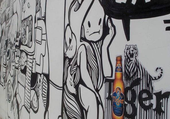 这场合作并不是赞助冠名那么简单,上个月,虎啤联合Air-Ink在香港做了一次线下艺术活动,他们邀请了Bao Ho和Caratoes在内的多位香港街头艺术家,以Air-Ink墨水为颜料在街头创作炫酷的壁画和涂鸦。