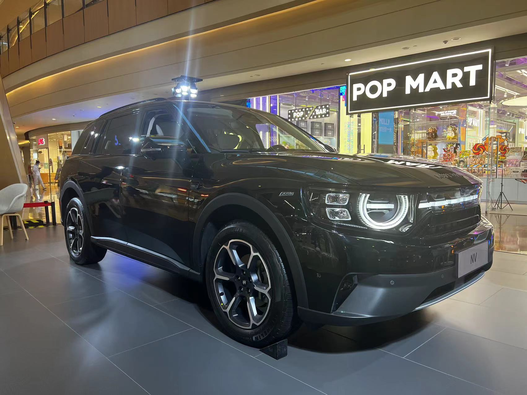 展车则被放置在了距离门店15米之外,位于商场公共区域的展台上。界面新闻到访时,该展厅销售人员正在向一名顾客做车型介绍。